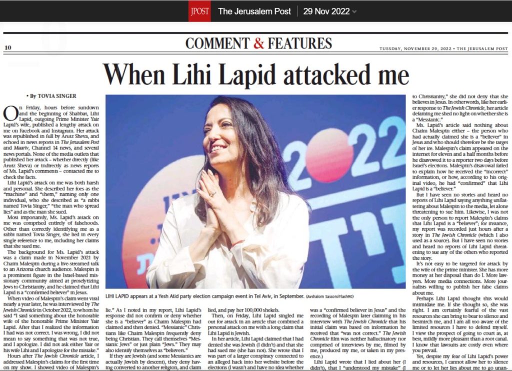 A Response to Lihi Lapid’s Lawsuit Against Me – Opinion